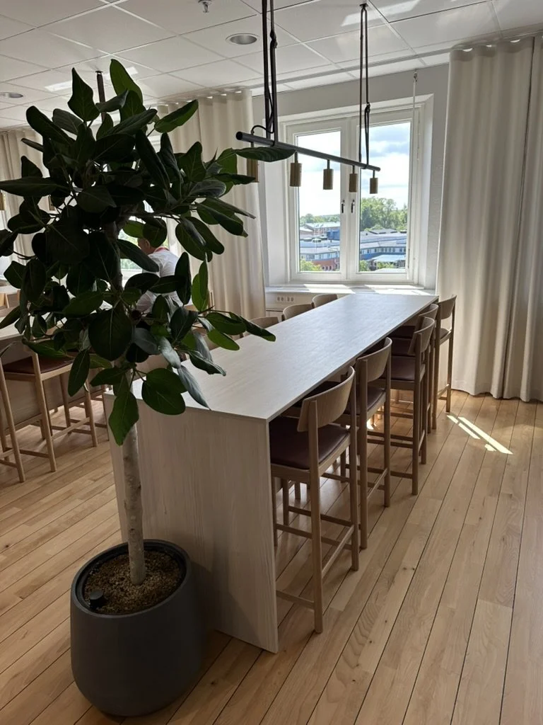 Genom sin insikt i hur moderna kontorsmiljöer fungerar på andra arbetsplatser kunde hon ge relevanta exempel och inspirera oss till att tänka nytt. Hennes förståelse för flöden och funktion bidrog starkt till att slutresultatet blev ett mycket funktionellt kontor – öppet, välplanerat och anpassat för att hela teamet ska kunna röra sig fritt och arbeta effektivt.